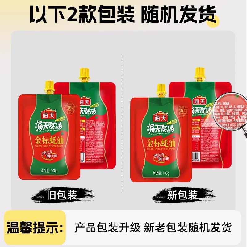 海天金标蚝油100g增鲜提味点蘸鲜味家用厨房调味料挤挤袋装