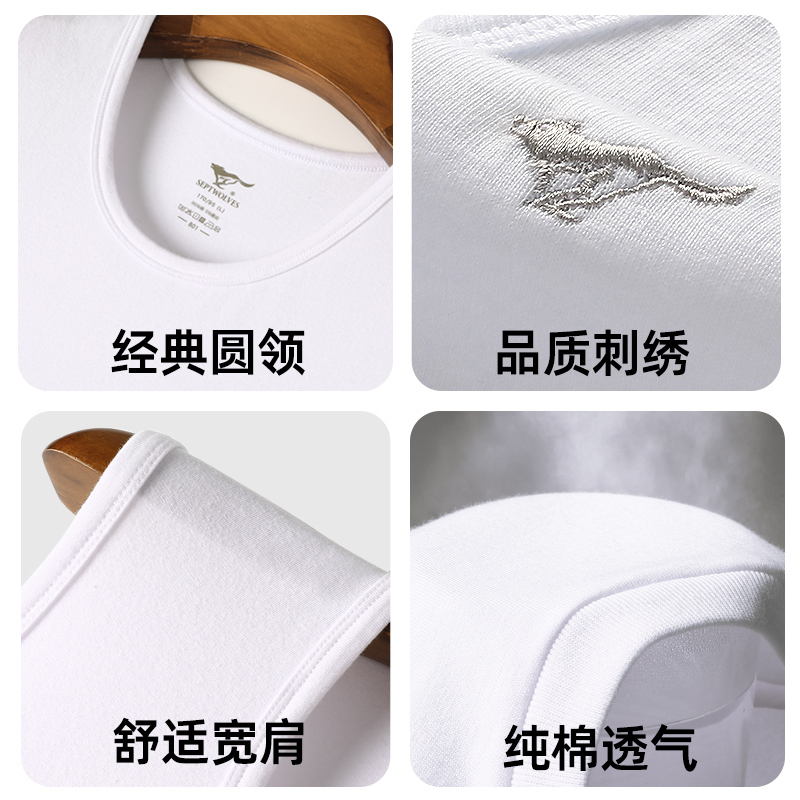 弹力宽肩无袖 七匹狼男装 吸汗运动汗衫 打底衫 背心中老年男纯棉秋季