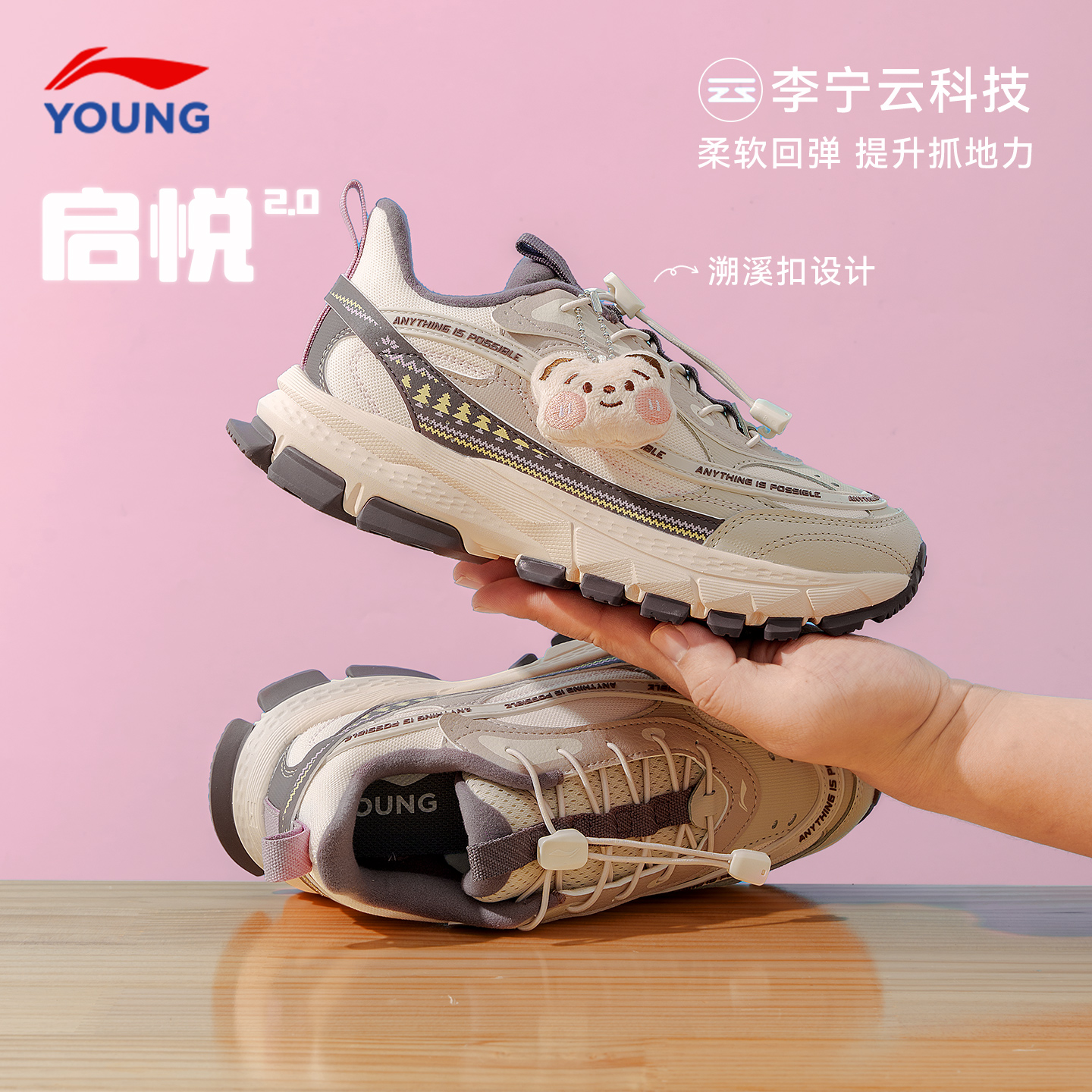 启悦2小女孩轻便防滑跑步鞋 李宁儿童运动鞋 25新款 老爹鞋 女童女款