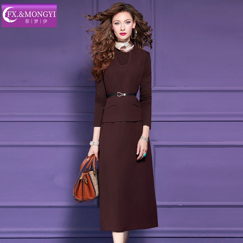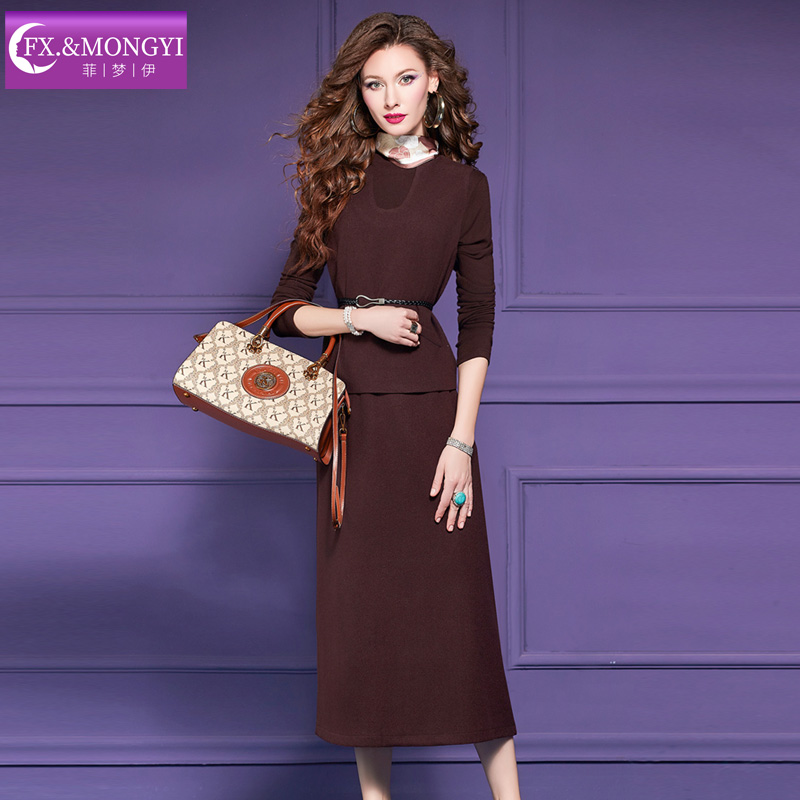 菲梦伊含羊毛省心搭配三件套女秋季 T恤毛呢马甲外套半身裙 打底衫