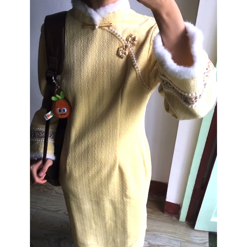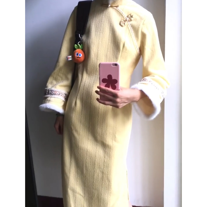 菲梦伊原创钉珠提花连衣裙女秋季 国风高端气质贵妇旗袍裙子 新中式