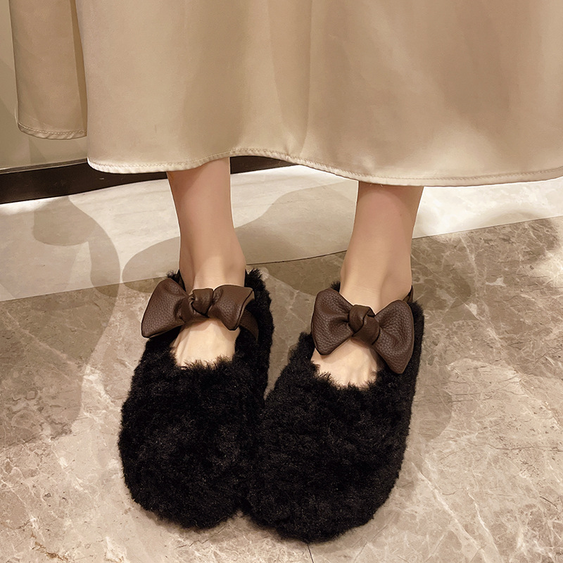 蝴蝶结毛毛鞋 软底加绒套脚外穿豆豆鞋 女2025年冬季 韩版 新款 时尚