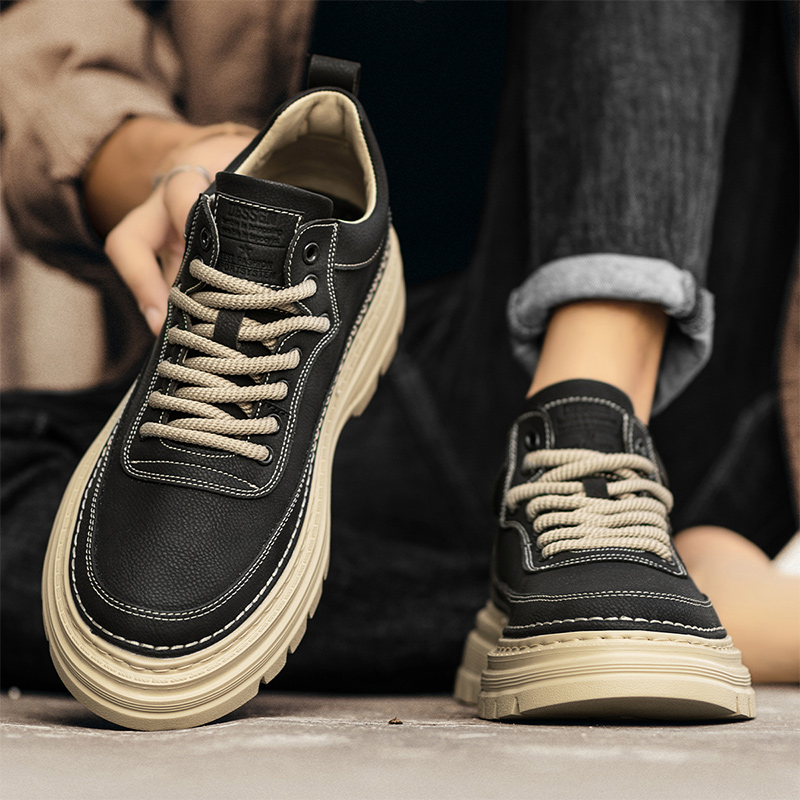 中帮机车靴子男生增高皮靴 2025新款 马丁靴男款 英伦风黑色高帮皮鞋