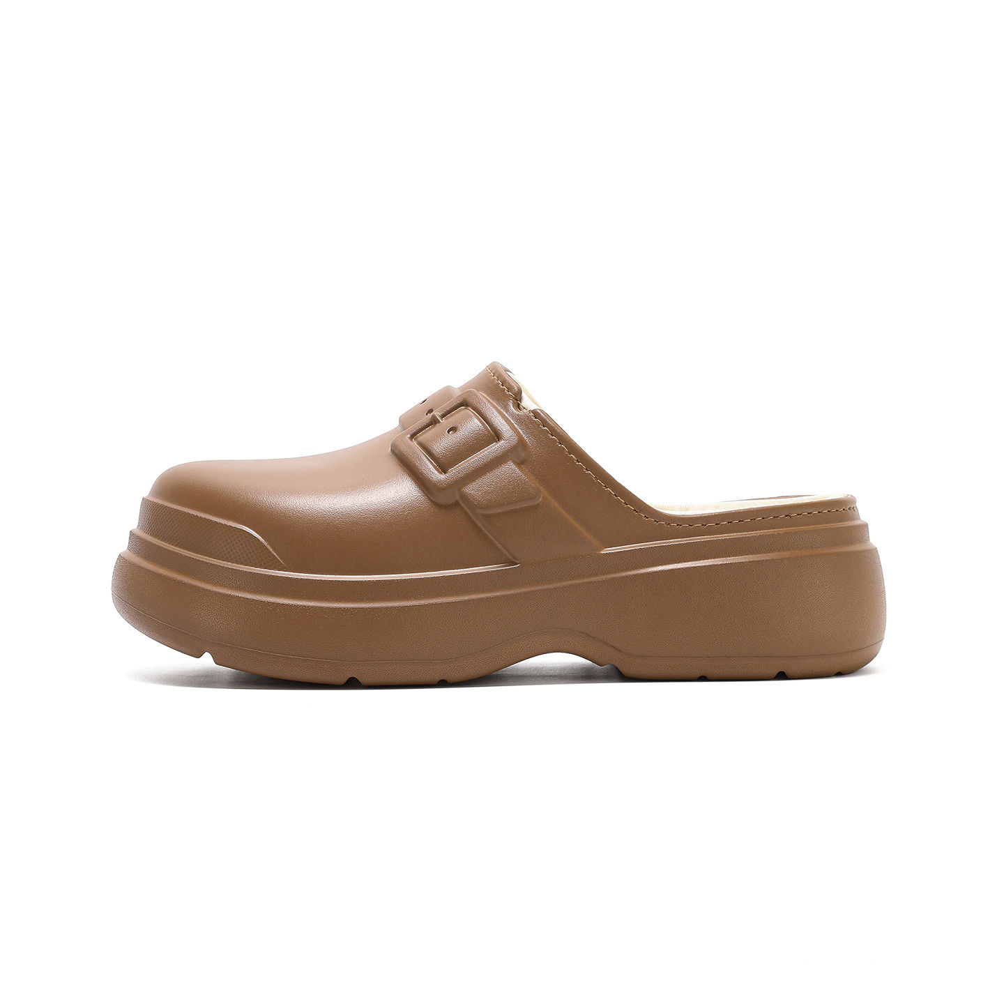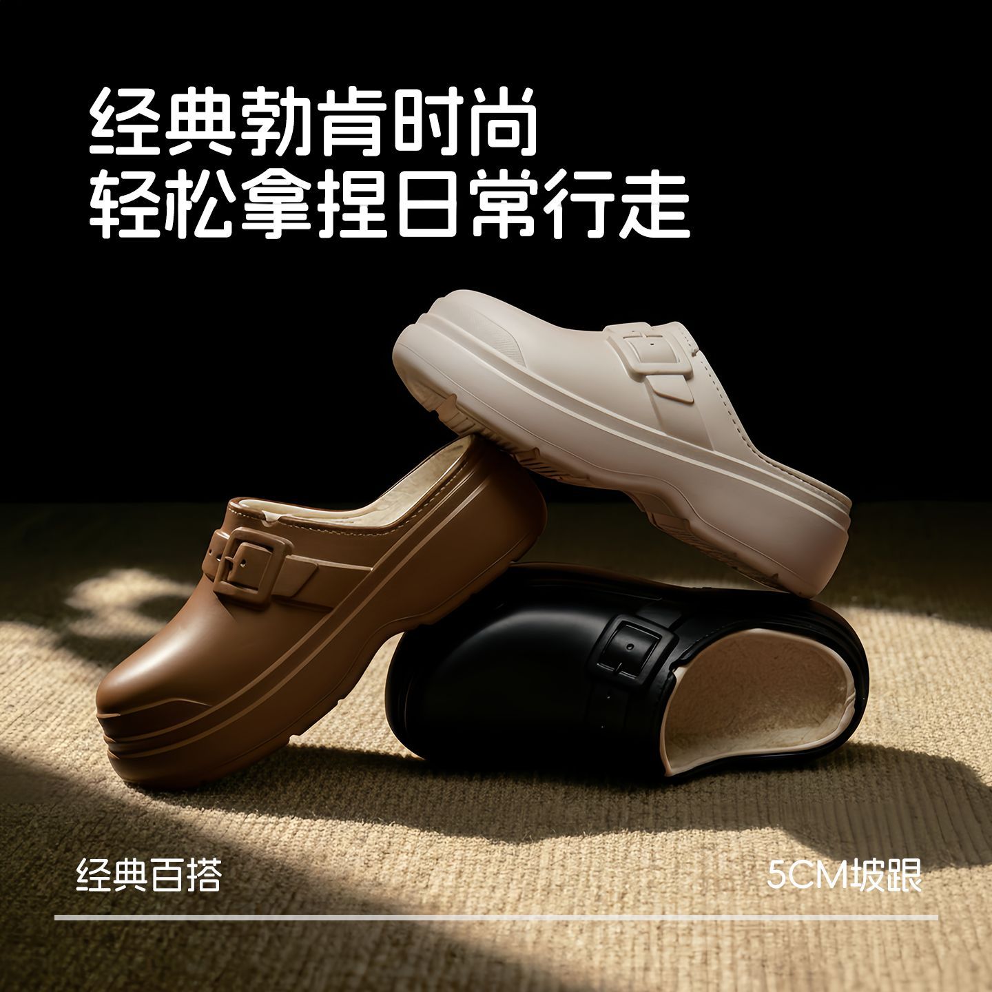 E3J1DBH5 厚底包头鞋 章若楠同款 百丽洞洞吐司勃肯拖女保暖毛毛鞋