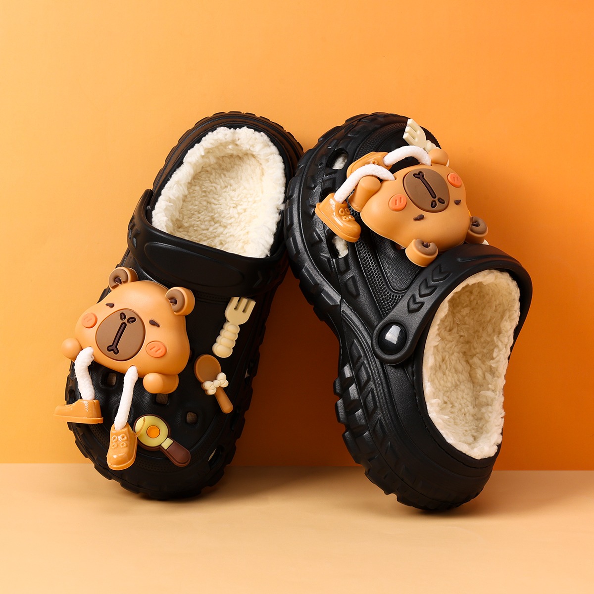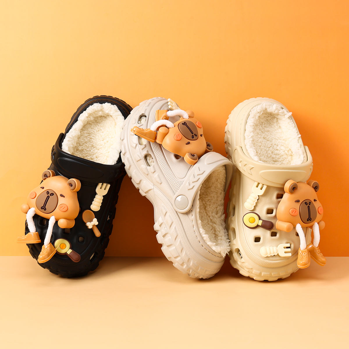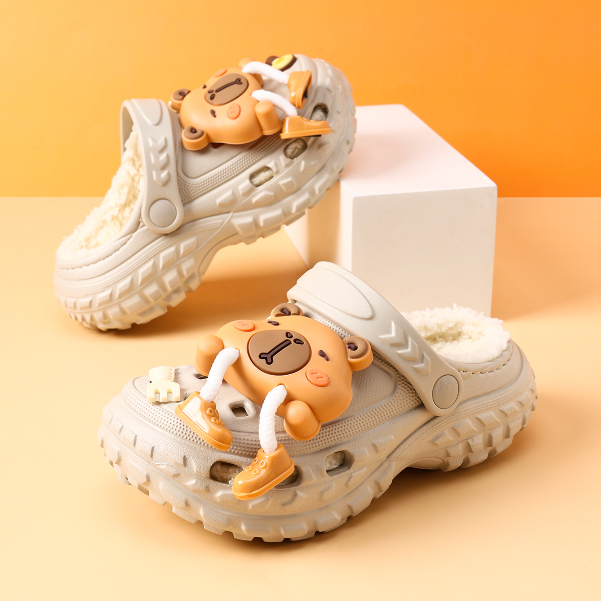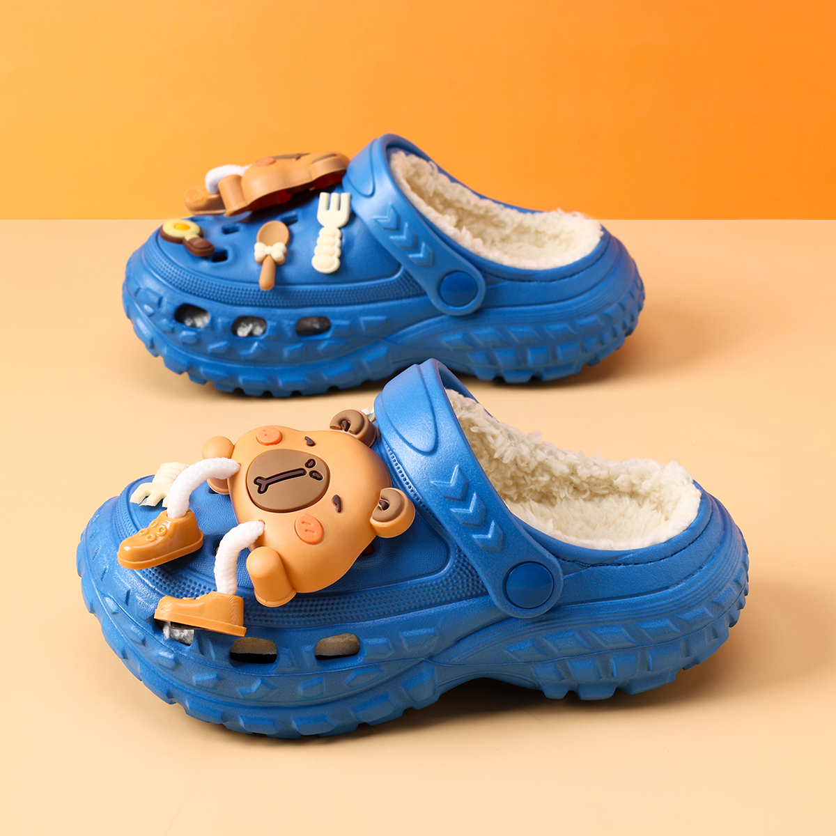 男童居家室内防滑软底男孩洞洞鞋 加绒儿童棉拖鞋 卡皮巴拉 新款 冬季