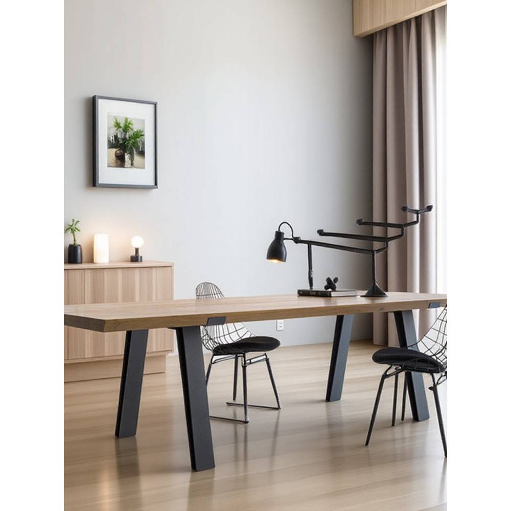 北欧铁艺实木会议桌设计师办公电脑桌简约现代餐桌原木书桌工作台