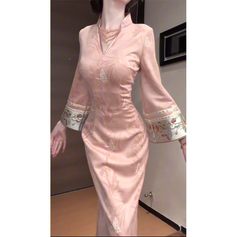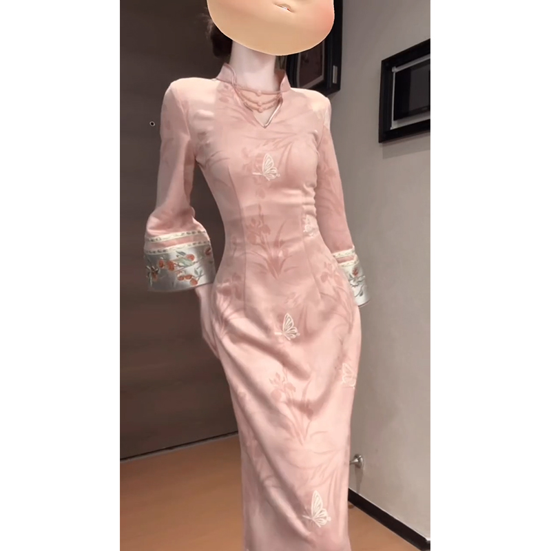 菲梦伊原创钉珠提花连衣裙女秋季 国风高端气质贵妇旗袍裙子 新中式