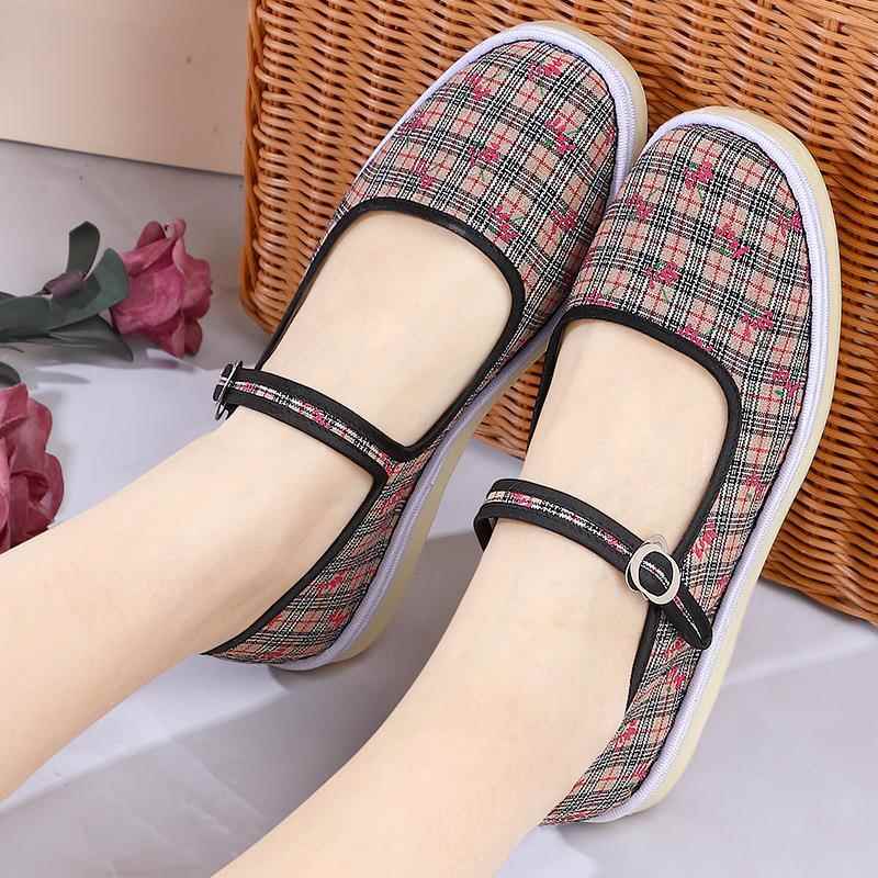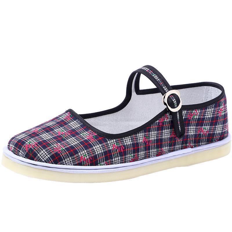 女手工牛筋底一字扣浅口休闲透气防滑软底老布鞋 新款 老北京棉布鞋
