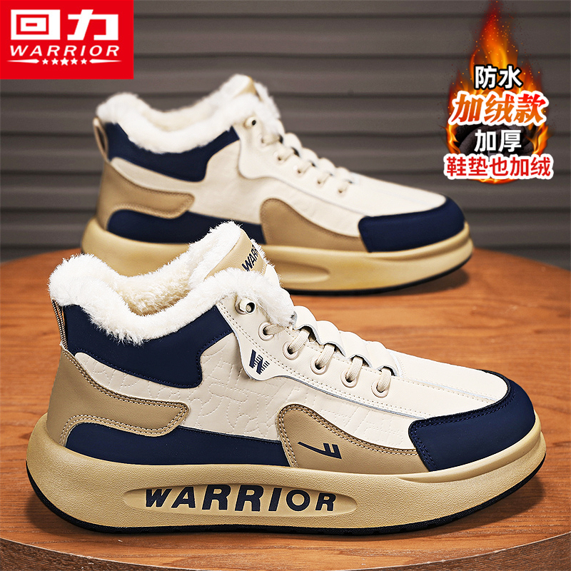 运动鞋 高帮休闲鞋 秋冬新款 子学生厚底男鞋 皮面鞋 征服鸿星尔克板鞋