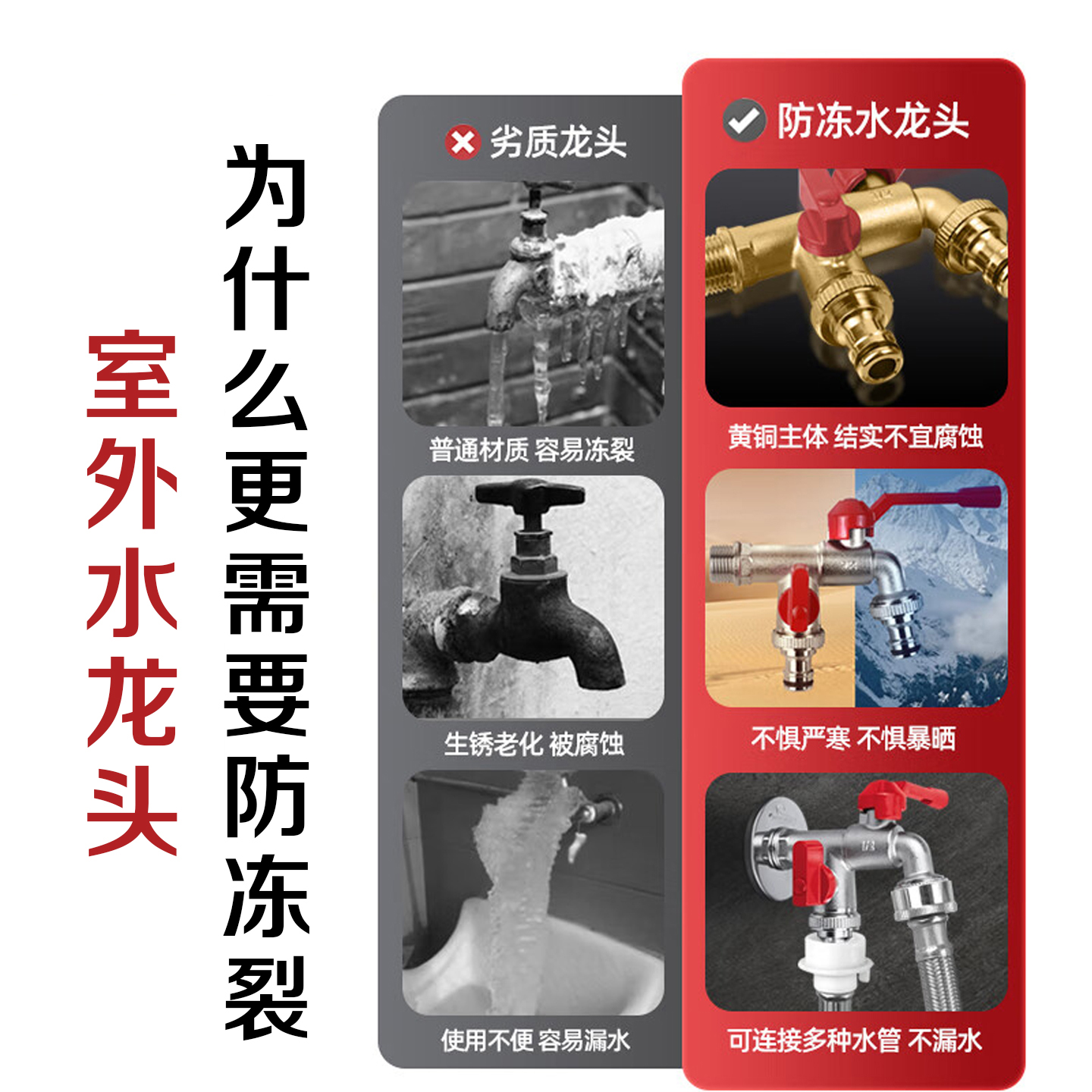 潜水艇户外水龙头防冻一进二出庭院花园浇花46分双出室外单冷龙头