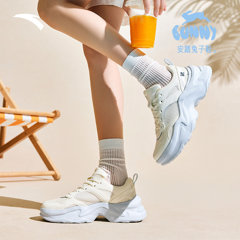 女鞋 网面透气潮流运动鞋 休闲鞋 新款 女 厚底增高2025夏季 安踏兔子鞋