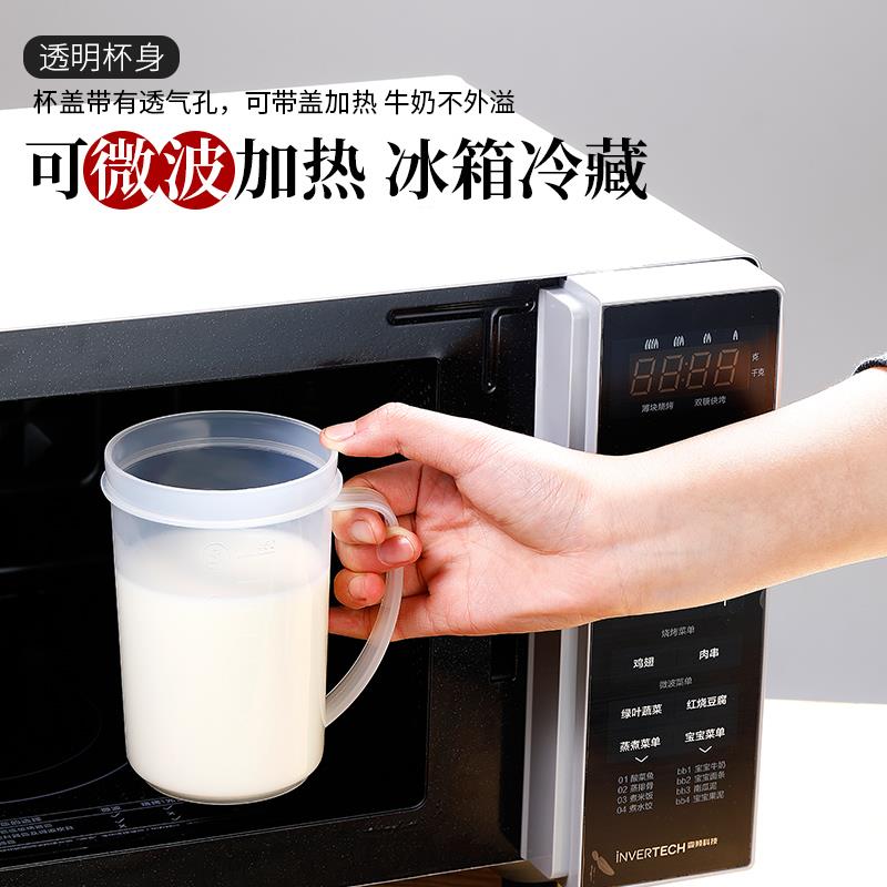 牛奶杯微波炉专用儿童牛奶杯刻度杯带盖可加热家用早餐喝牛奶杯子