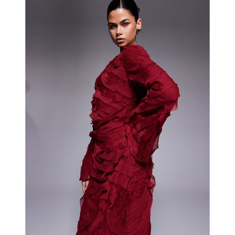 DPLAY2025秋季 腰精裙系列红色连衣裙订婚礼服红裙长裙敬酒长裙女