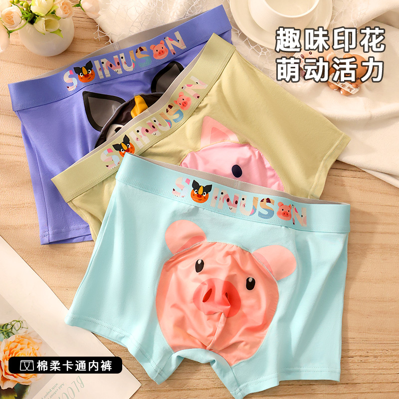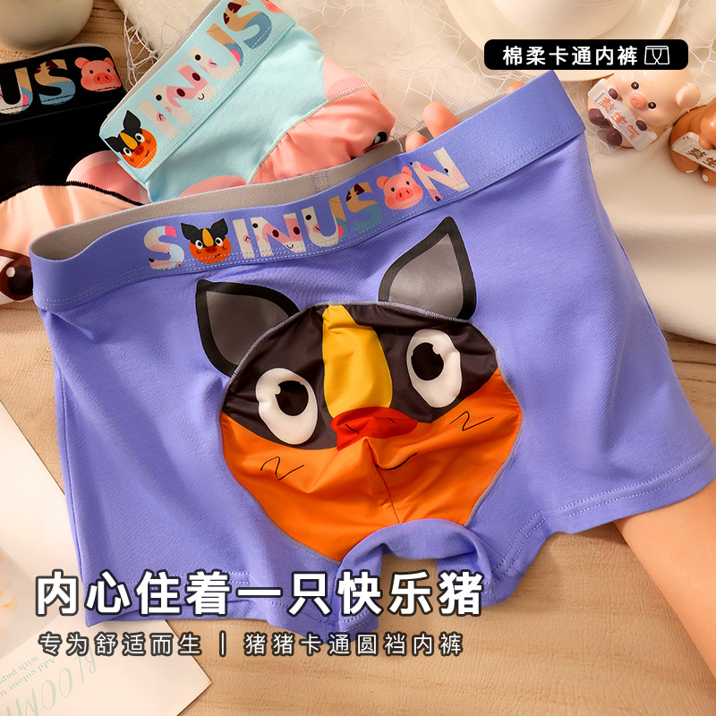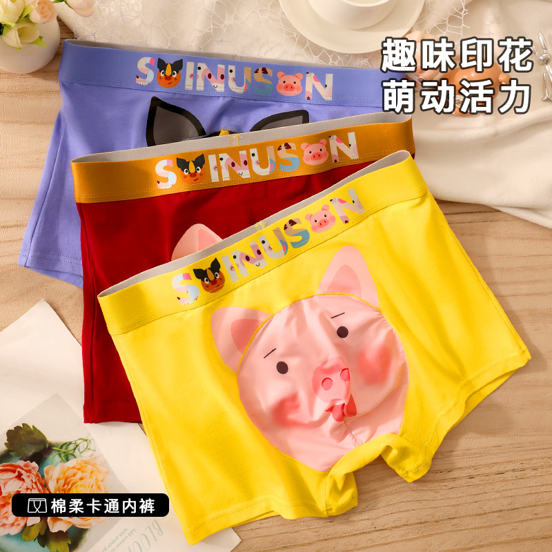 衩趣味卡通青年学生男平角裤 抗菌舒适透气亲肤中腰四角裤 内裤 男士