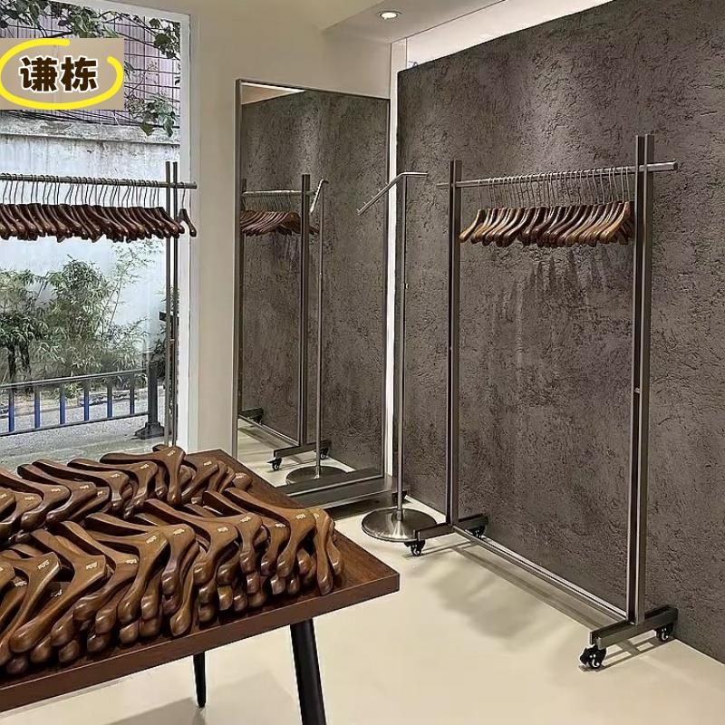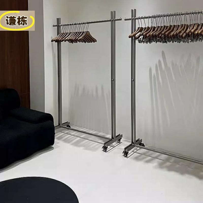 高端防指纹封釉服装 货架不锈钢拉丝 店展示架落地工业风陈列男女装