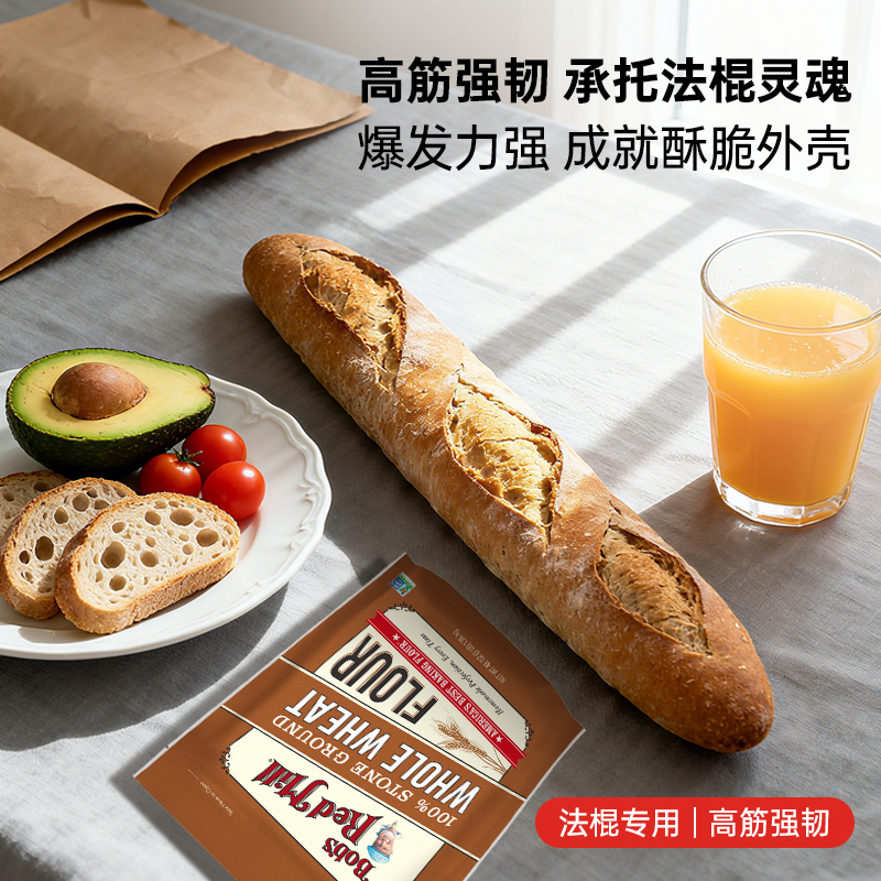 鲍勃红磨坊进口全麦高筋面粉法棍专用面粉官方旗舰店家用小包装