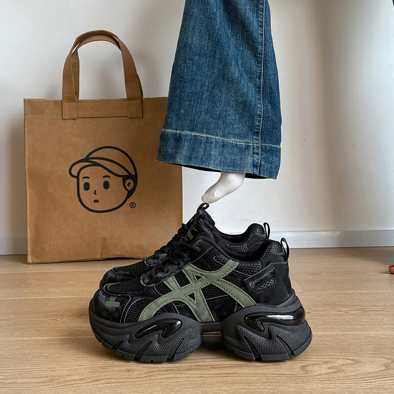 休闲厚底小个子高跟透气网面鞋 大东老爹鞋 新款 2025秋季 女0353 女鞋