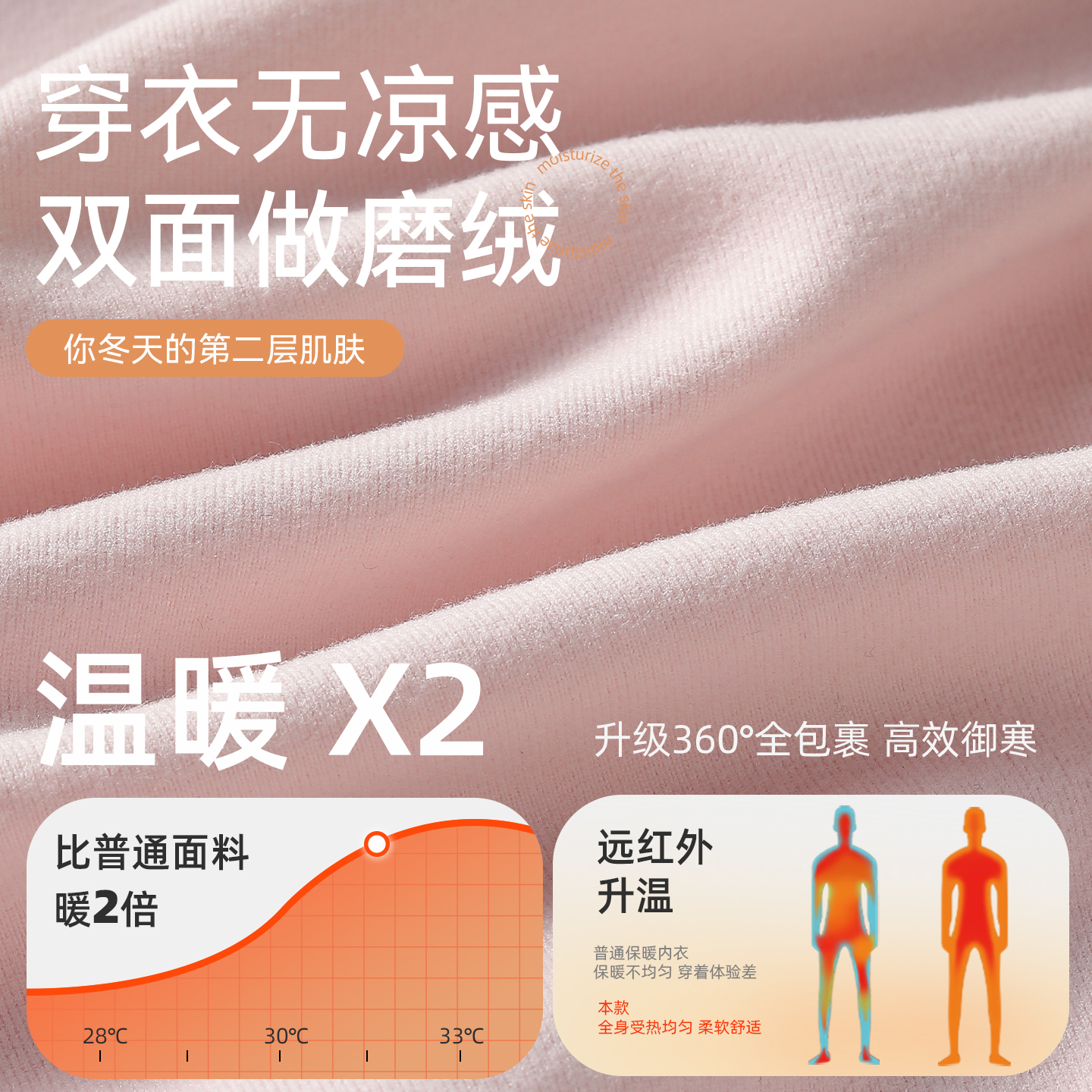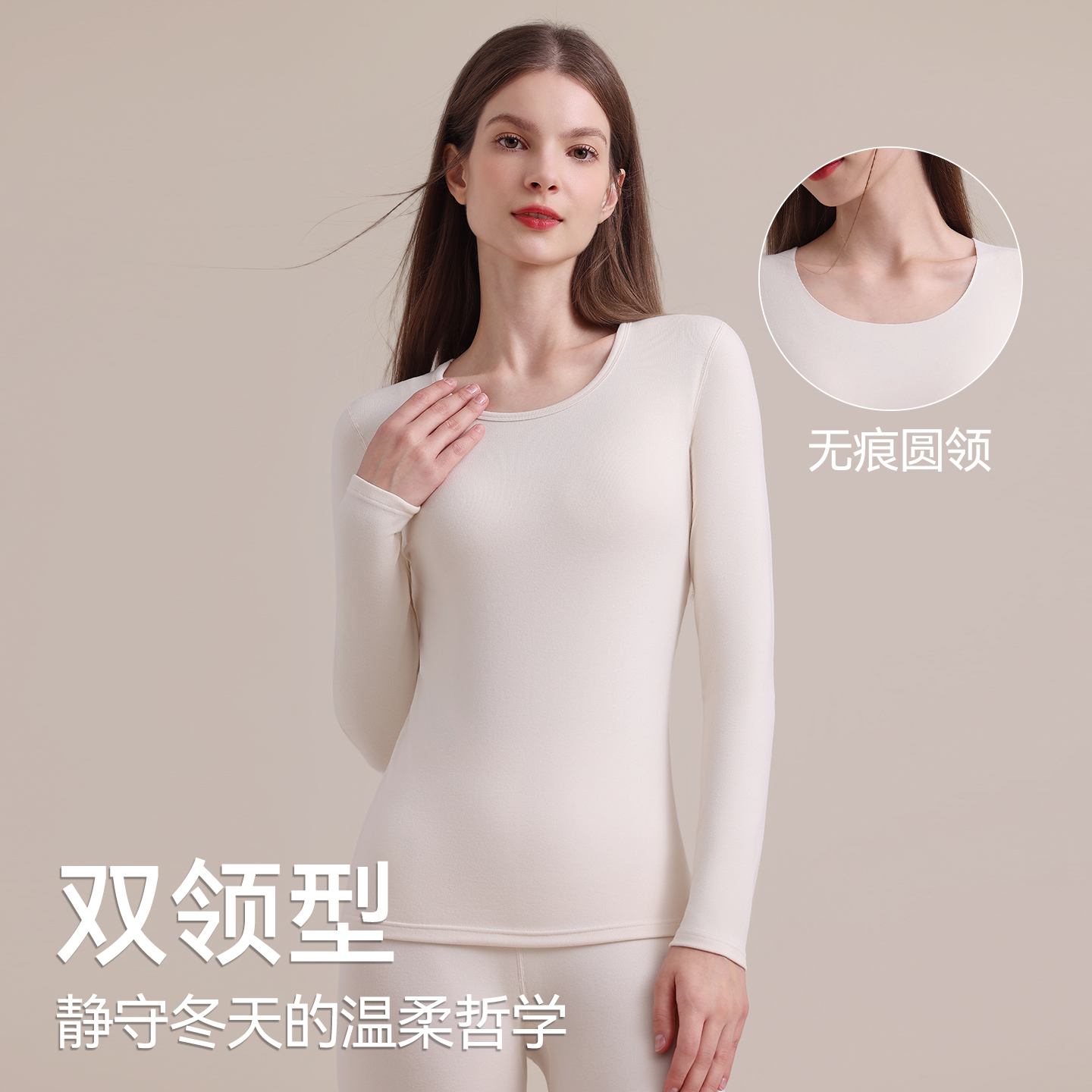猫人情侣秋衣秋裤 女羊绒蛋白美肤肌底衣无痕圆领保暖内衣男冬 套装