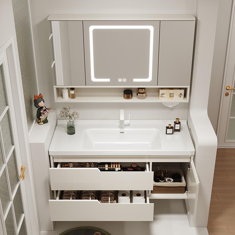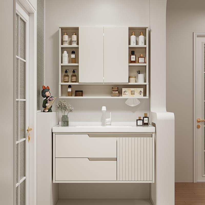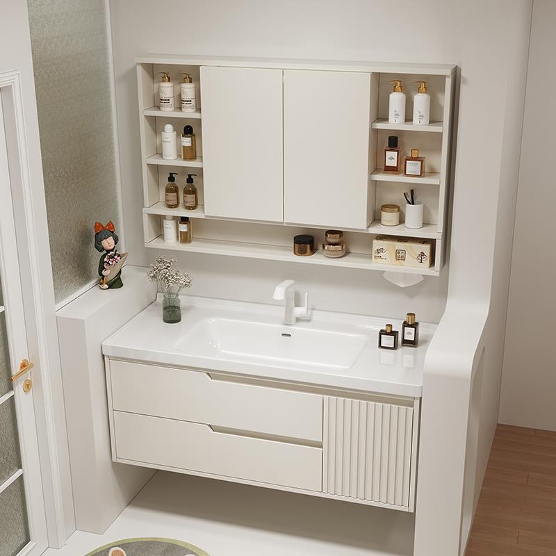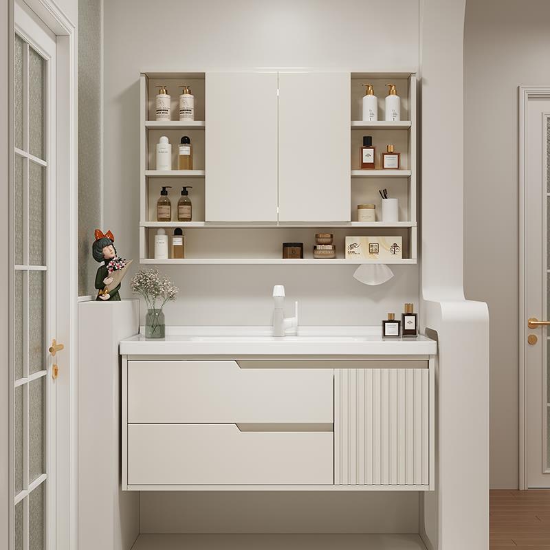 橡木奶油风浴室柜折叠风水镜隐藏式 镜子陶瓷一体盆洗脸盆洗手盆柜