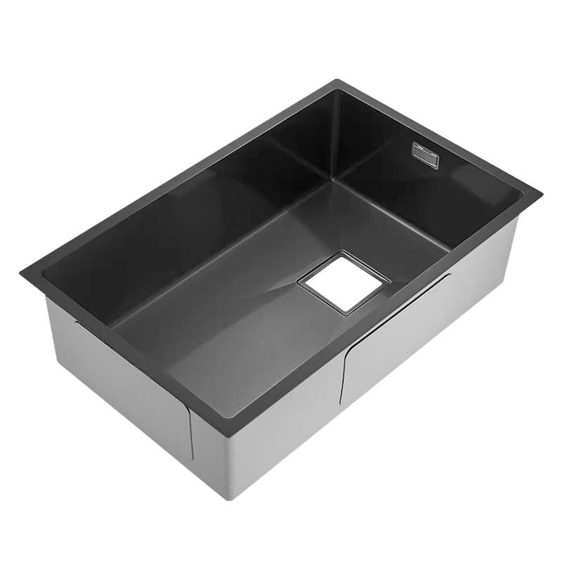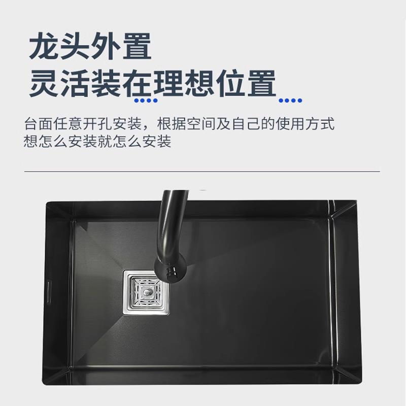 洗菜盆大单槽304不锈钢厨房洗碗水槽400黑色极窄台盆侧排水台下盆