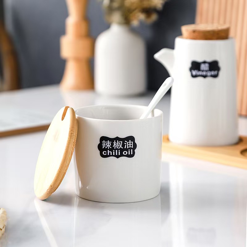 商用陶瓷调味瓶罐面馆辣椒罐醋壶酱油壶香油壶盐罐套装 耐高温