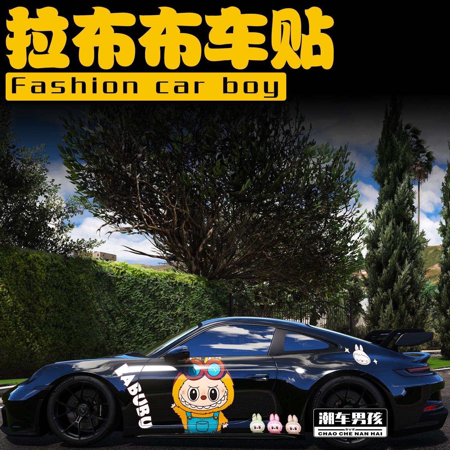 适用于保时捷911车贴718潮流网红拉布布labubu汽车车身贴个性 定制