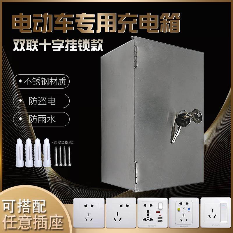 不锈钢室外电动电瓶车充电箱电源插座带锁电源盒户外漏电保护插座