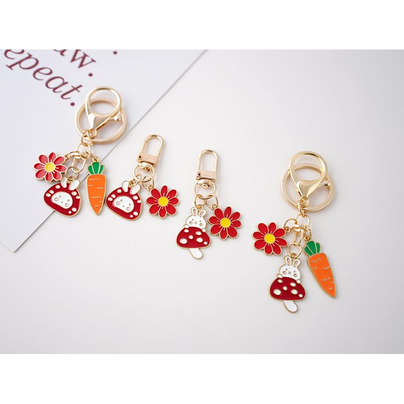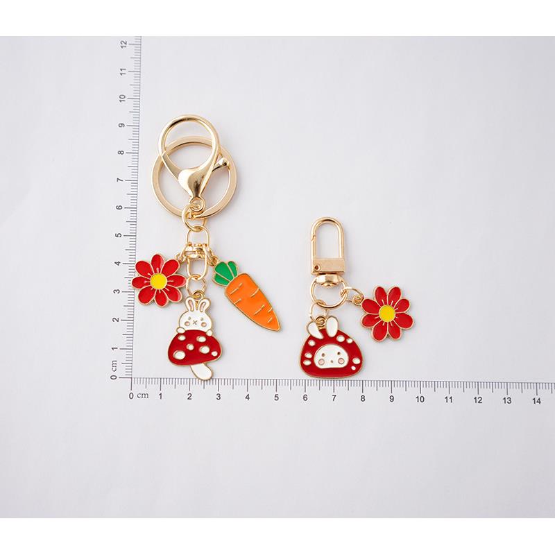 ins卡通蘑菇兔子情侣钥匙扣环挂件男女可爱包包挂饰圈链创意