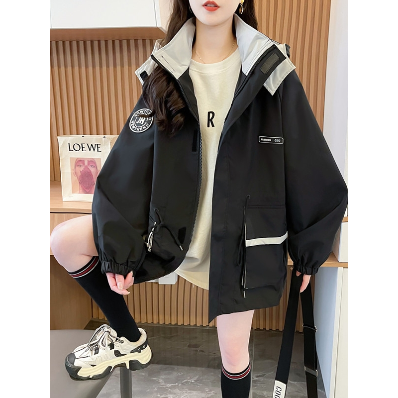 收腰显瘦连帽休闲中长款 宽松大码 风衣潮 新款 冲锋衣外套女2025春装