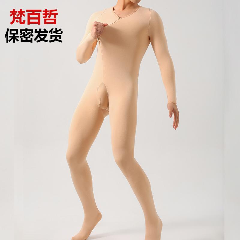 保暖开口免脱带jj性感连裤 加大码 加绒加厚拉链连体全身衣男士