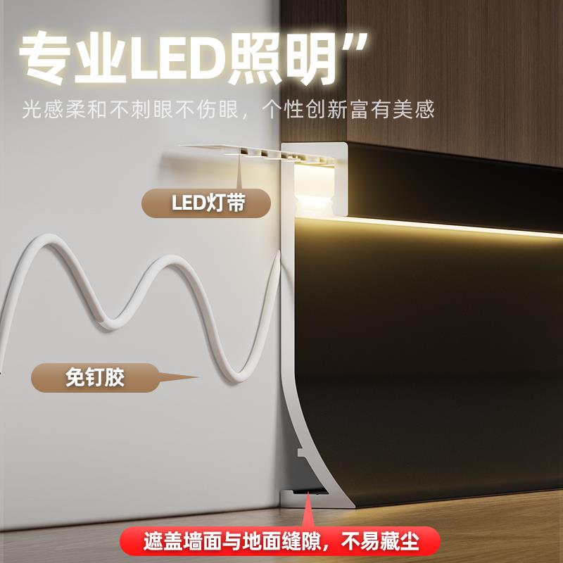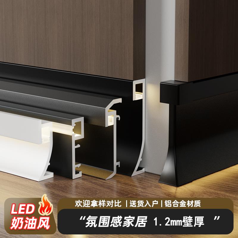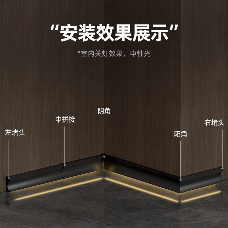 led灯带铝合金踢脚线金属明装 发光地脚线不锈钢带灯贴脚线墙角线