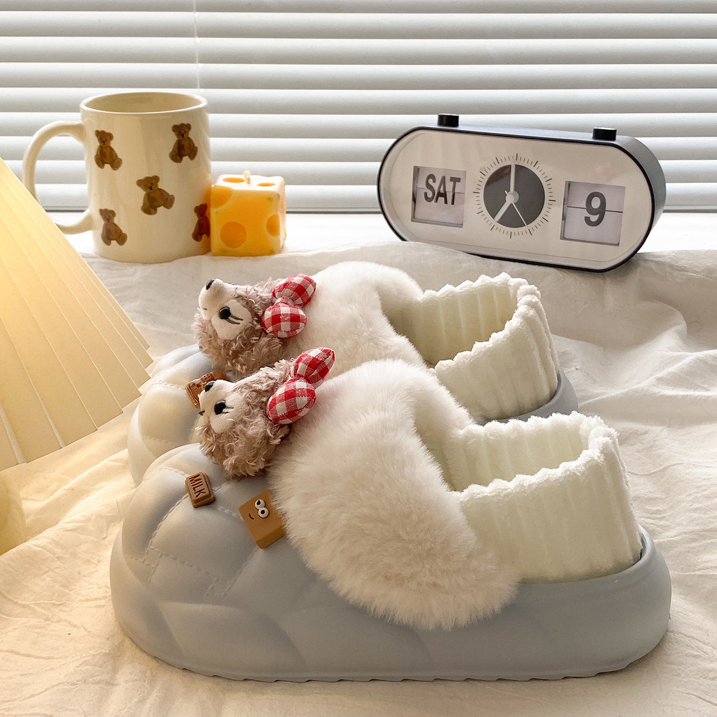 学生宿舍居家包头棉鞋 女款 外穿棉拖鞋 可拆卸毛绒保暖EVA厚底冬季