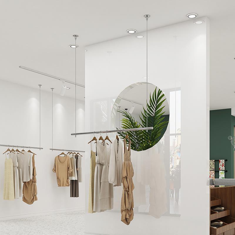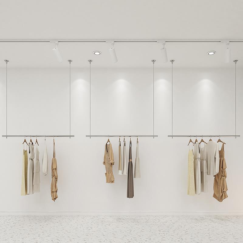 服装 店银色橱窗钢丝调节展示架 店展示架不锈钢吊架升降挂衣杆女装