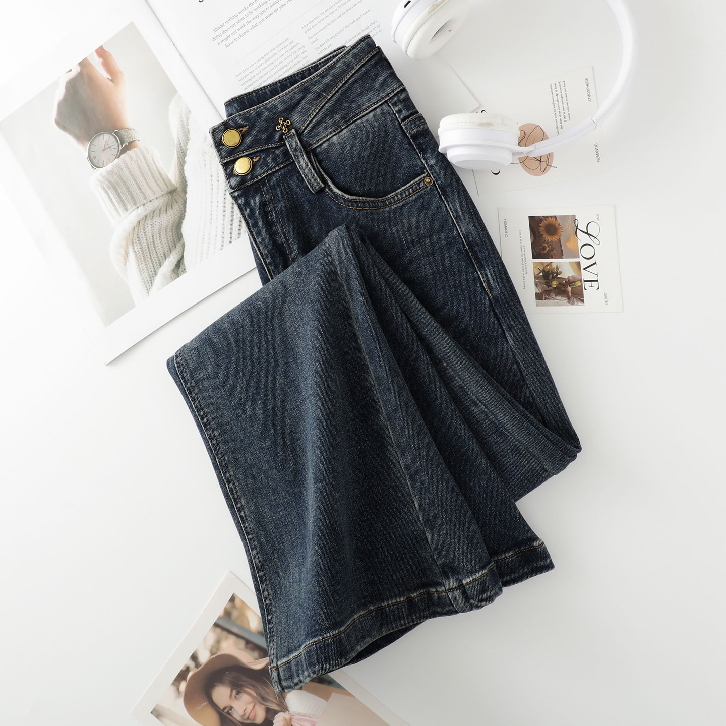 显瘦不贴腿直筒阔腿裤 女小个子大码 子潮 高腰微喇叭牛仔裤 春秋新款