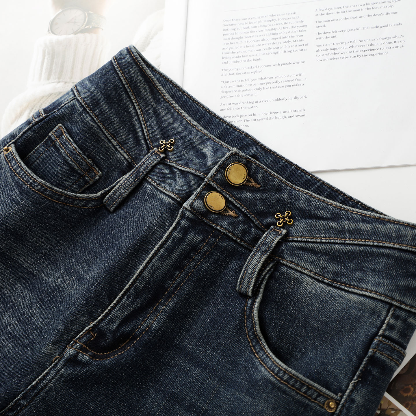 子薄绒 法棍加绒小个子九分烟管裤 蓝灰直筒牛仔裤 女高腰2025年新款