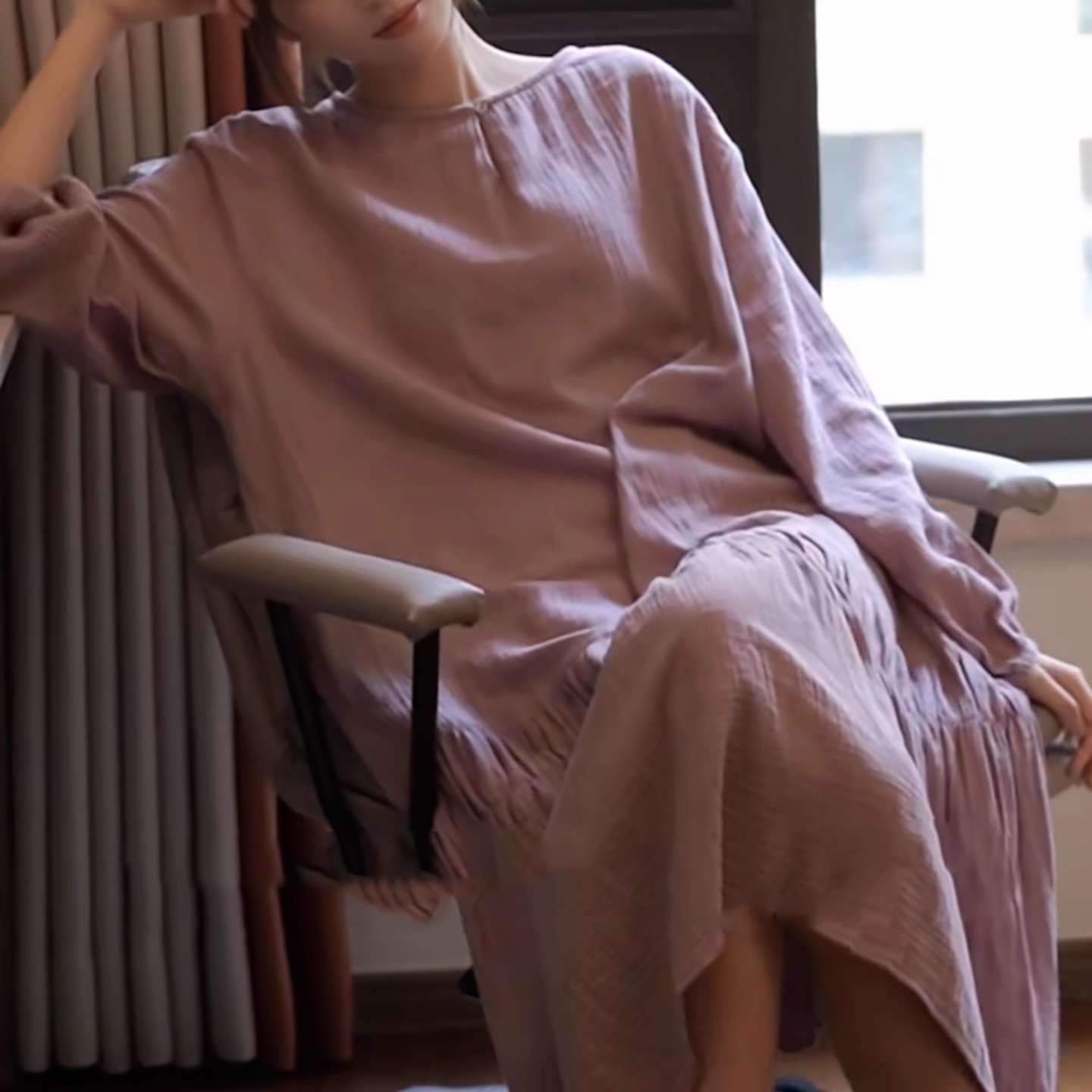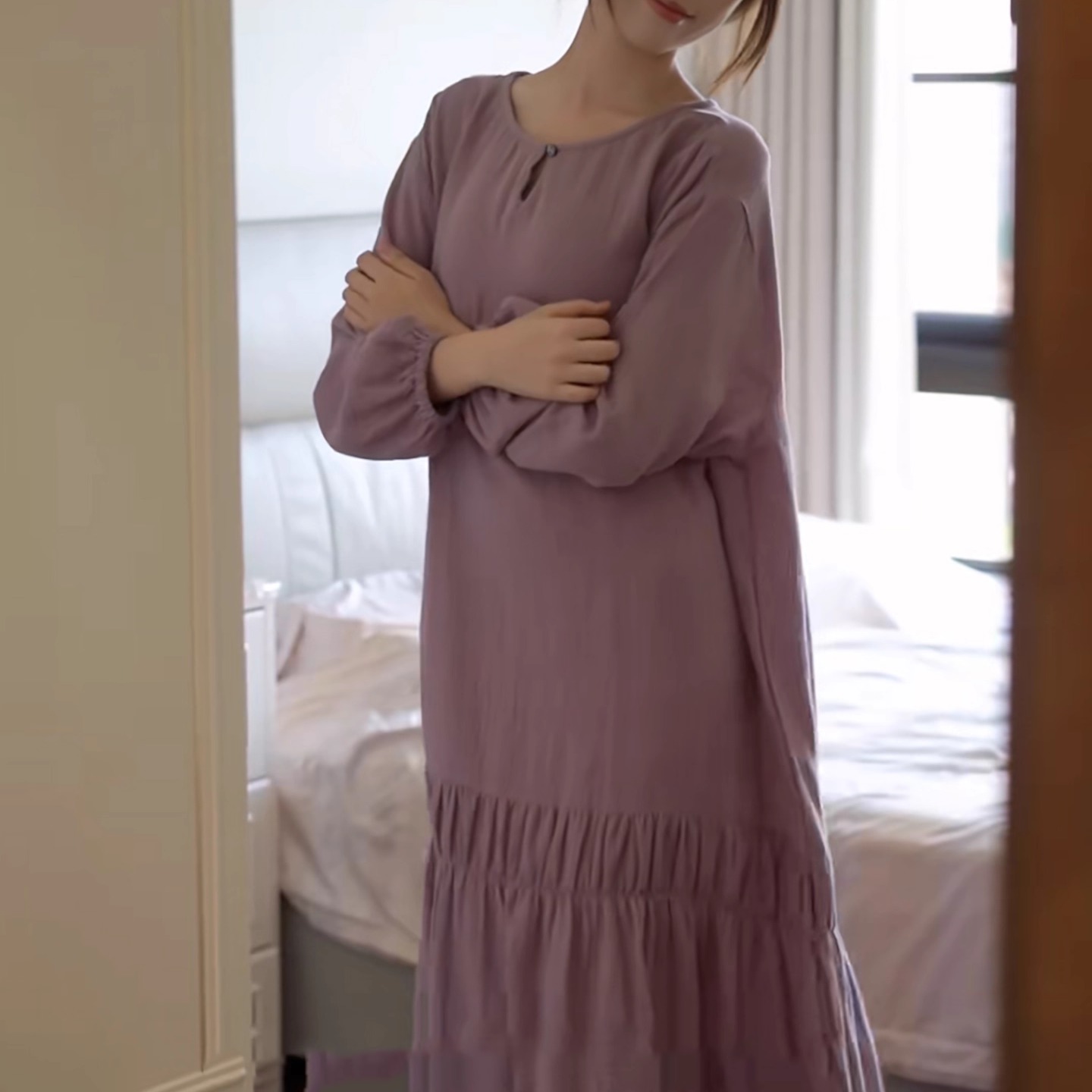 睡裙可外穿时尚 紫色显白长款 休闲高级感宽松家居服 长袖 25年春秋季