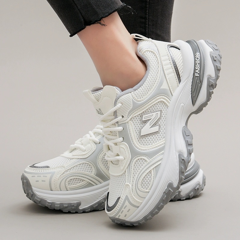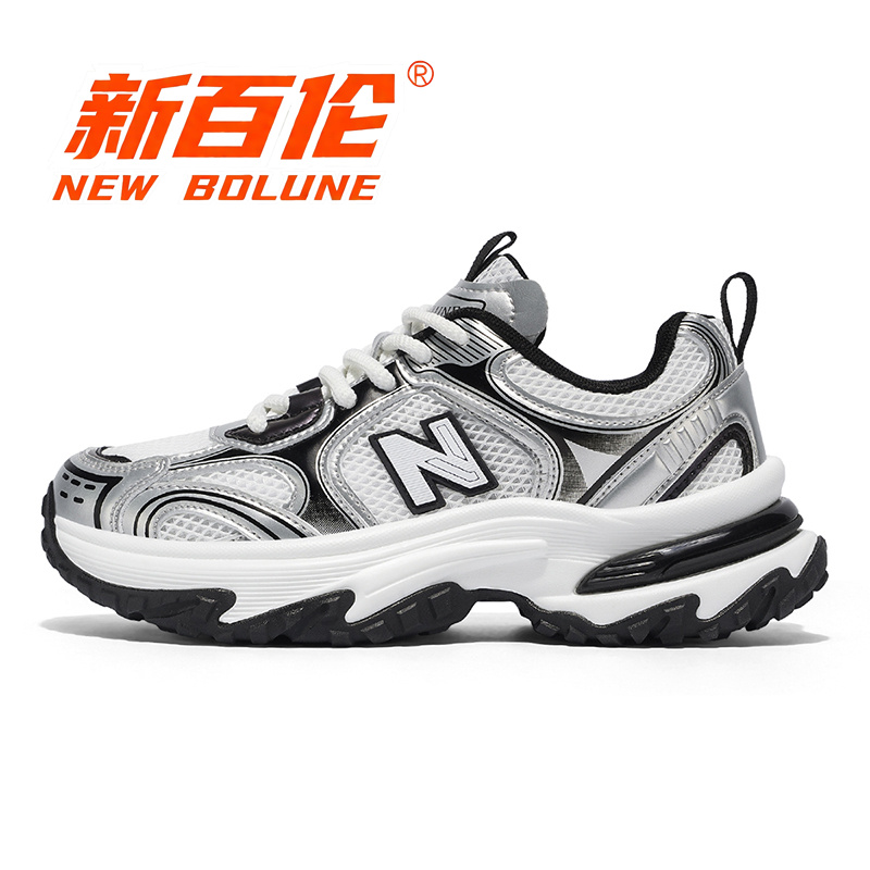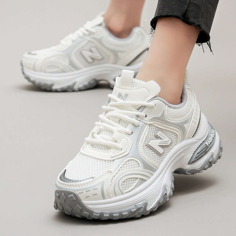 厚底增高休闲鞋 秋女鞋 银色老爹鞋 时尚 斯凯奇熊猫鞋 运动鞋 2025新款