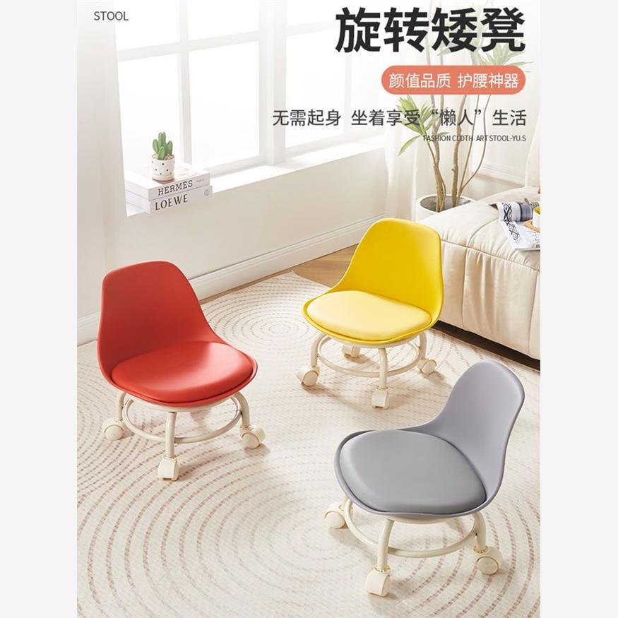 亚克力万向轮小凳子家用静音滑轮矮凳带轮换鞋 凳客厅儿童靠背椅子
