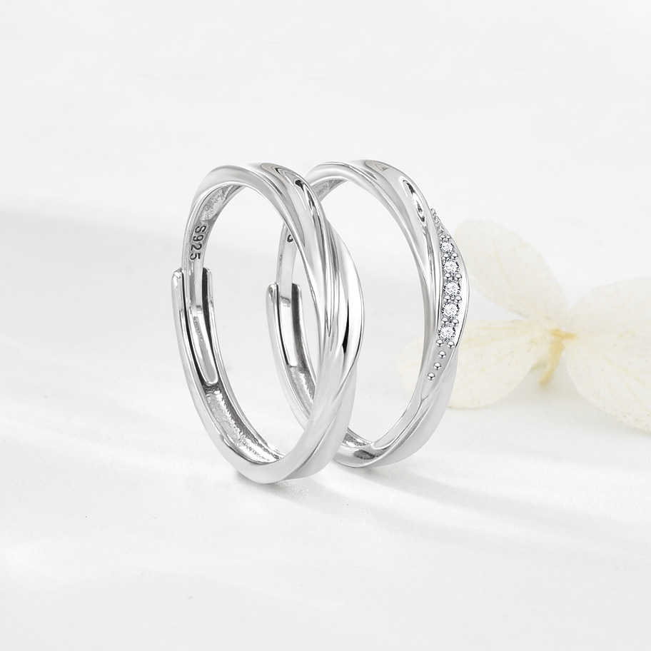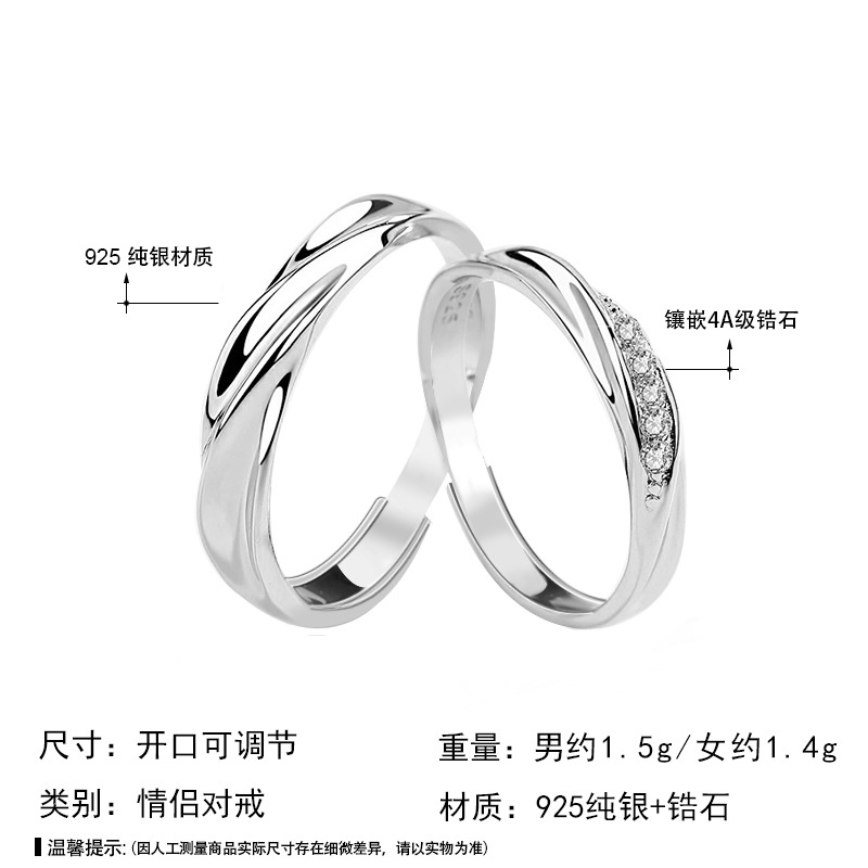 s925纯银镶钻莫比乌斯情侣戒指男女一对简约高级感结婚对戒银饰品
