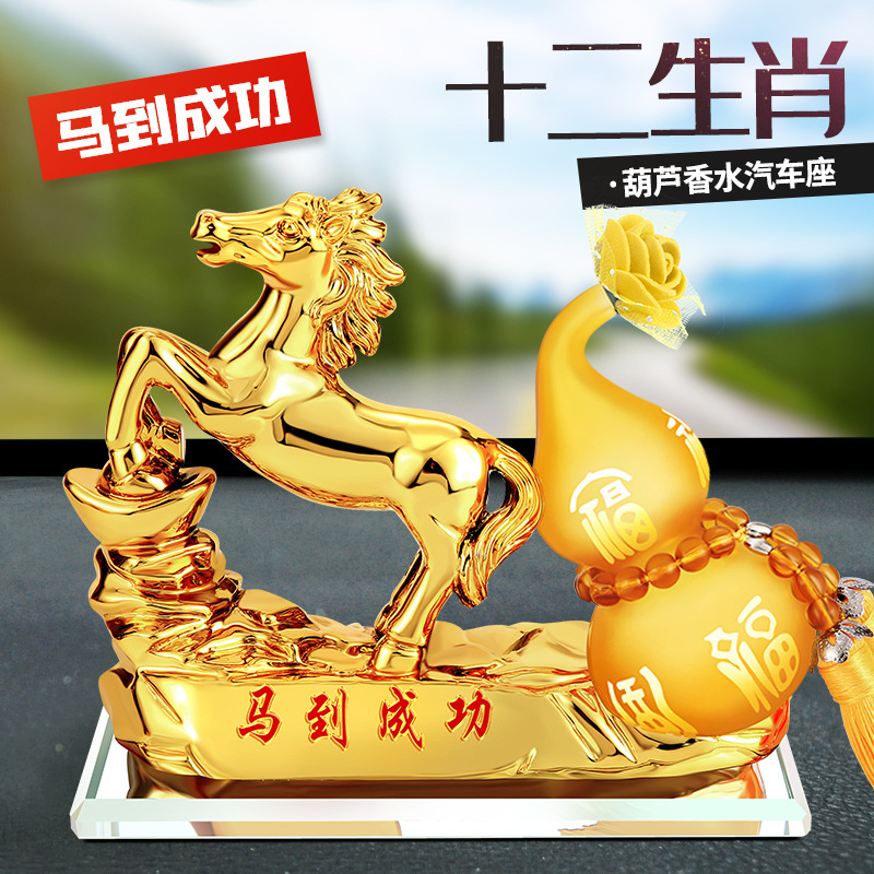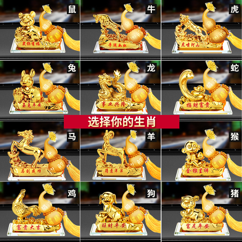 汽车树脂摆件创意个性 饰品车内 十二生肖车载香水座生肖葫芦水晶装