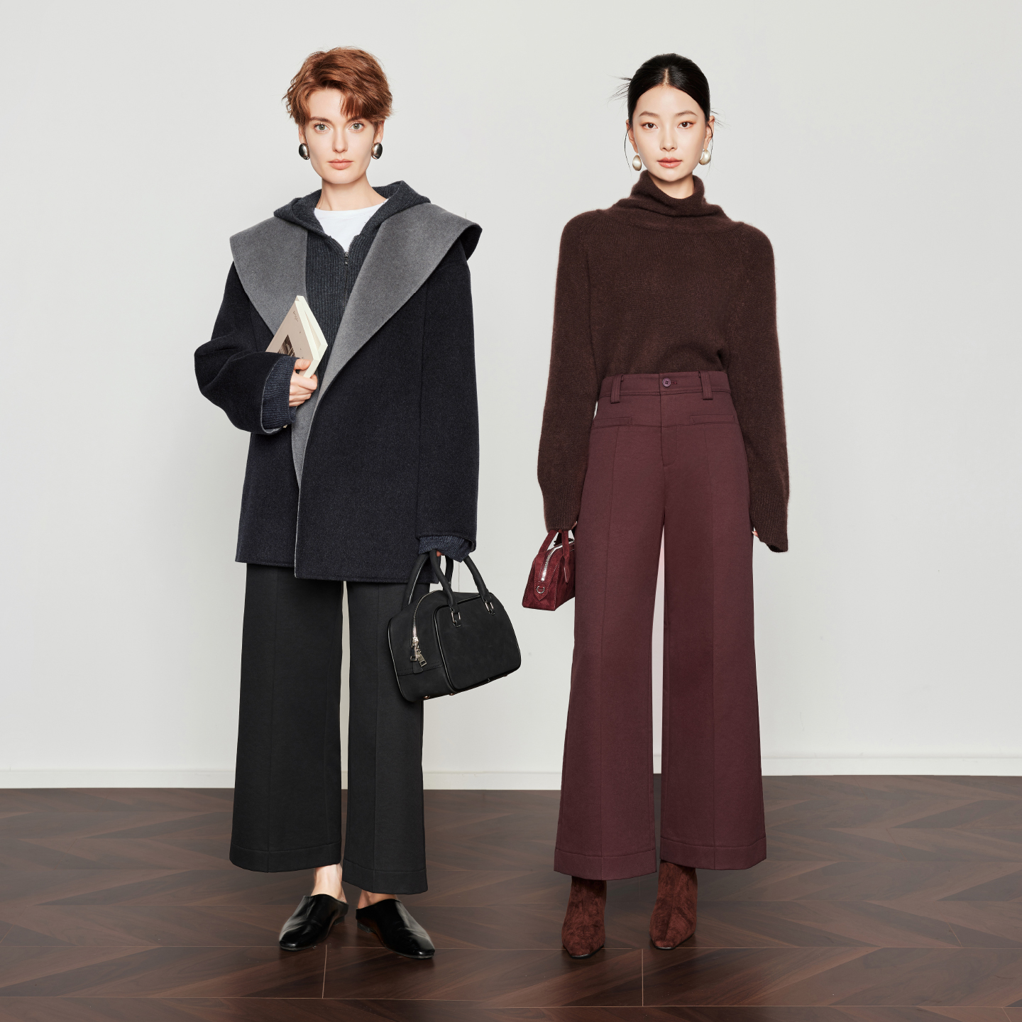 女25冬新款 CHICJOJO休闲裤 黑色宽松直筒微喇九分裤 风芒序曲