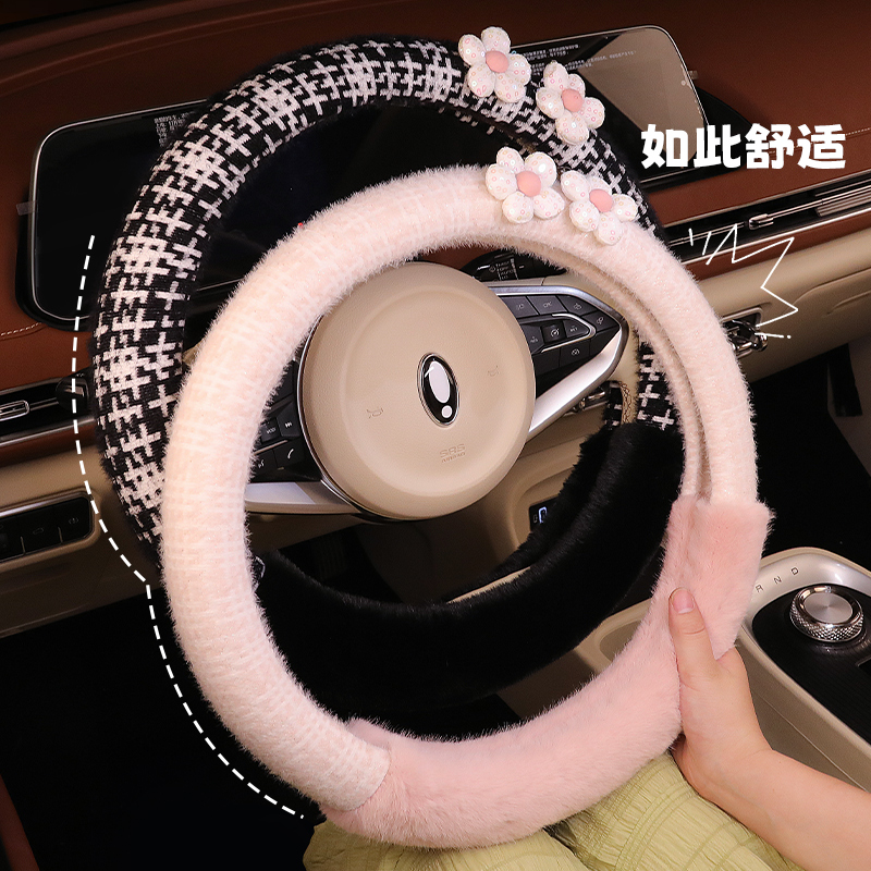 汽车方向盘套冬季 毛绒O型D型雪貂绒保暖聚温车把套防滑车用男女款
