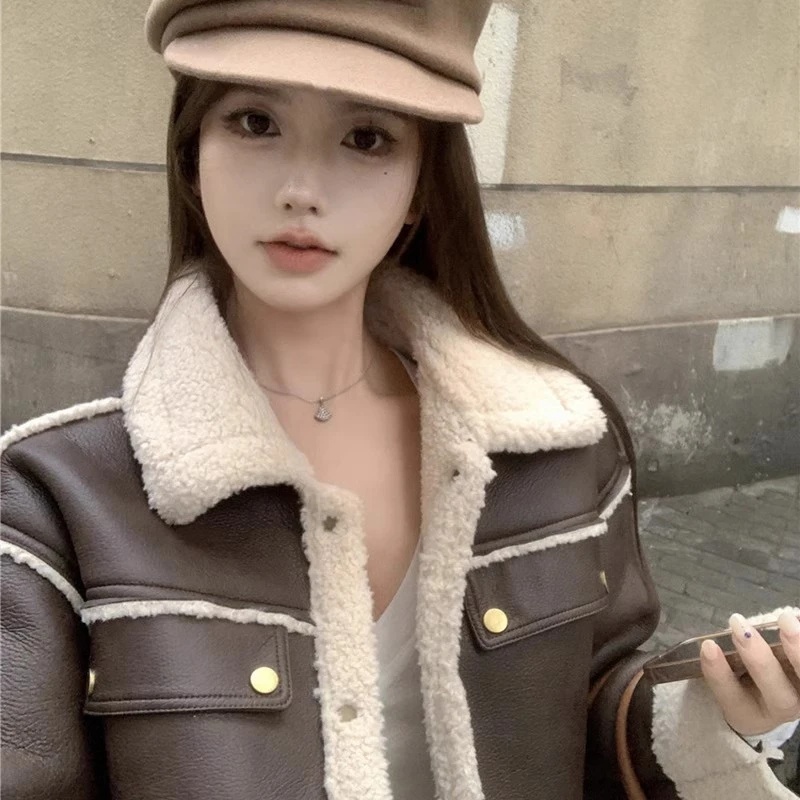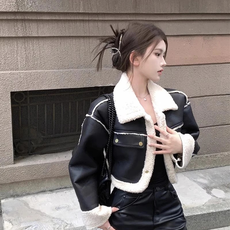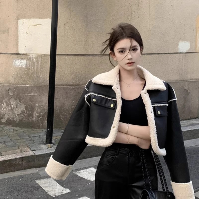 2025新款 外套女秋冬季 宽松休闲百搭显瘦洋气上衣 拼接夹克短款 韩版