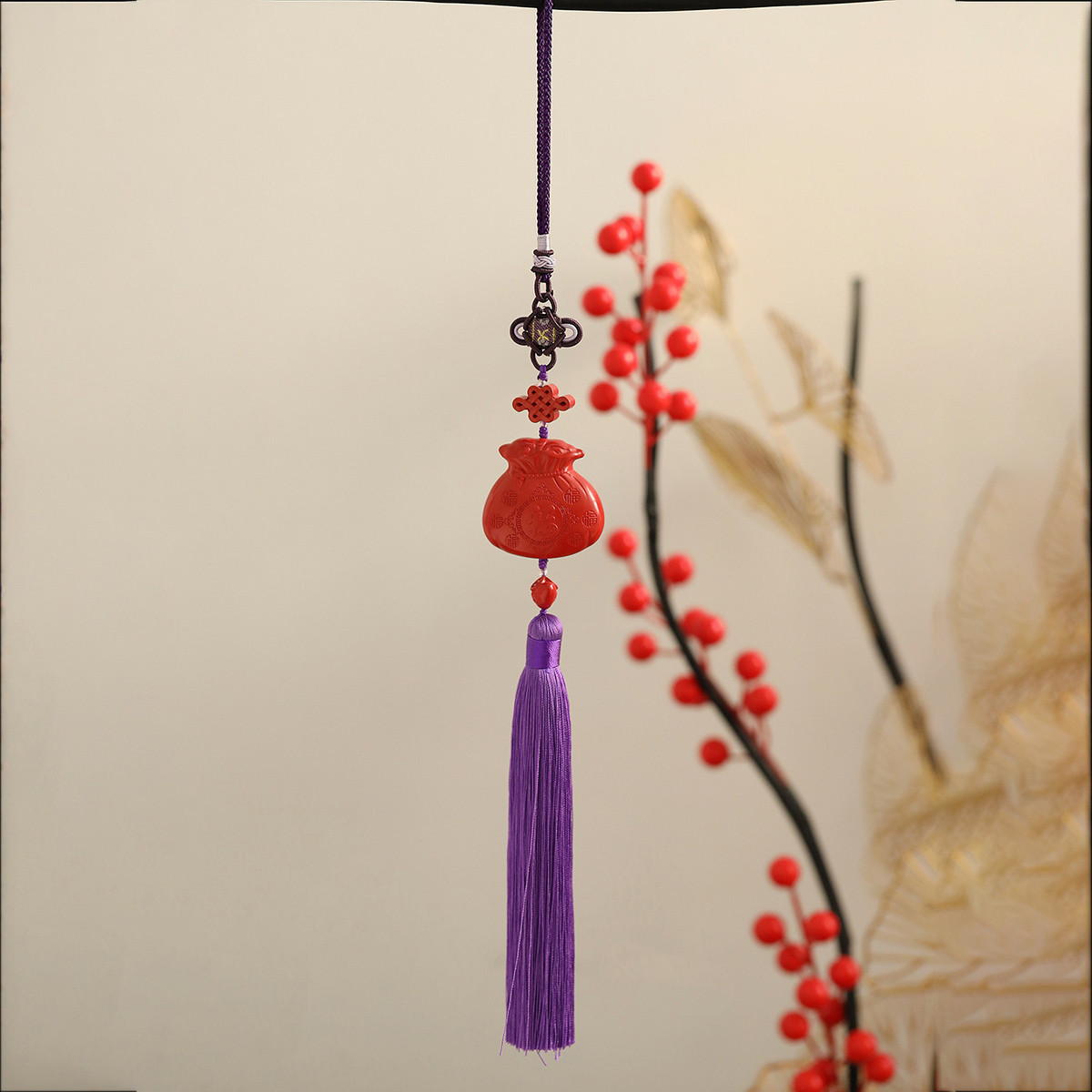 朱砂福袋中国结流苏汽车挂件中国红国风新中式 车载后视镜内挂饰品