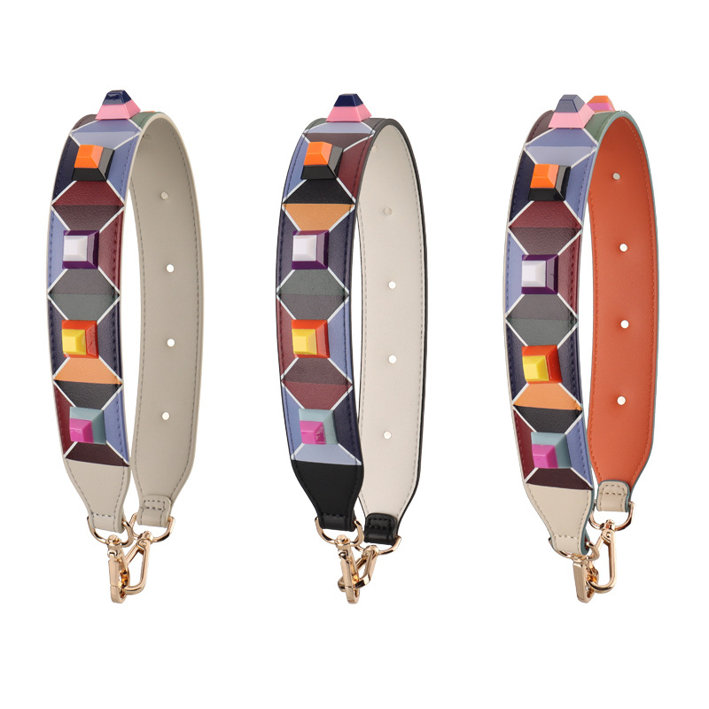 肩带双面皮铆钉包包配件带宽肩带彩色单肩包带女包64时尚 女包配件