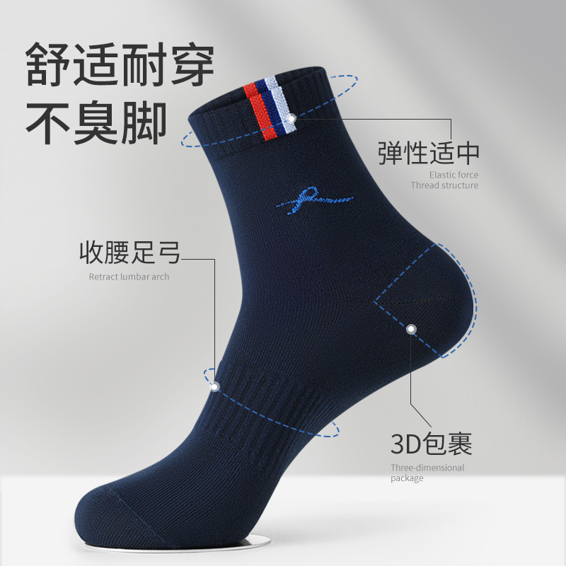 男式 春秋冬季 长袜男袜 袜子纯棉防臭吸汗中筒袜全棉袜厚款 浪莎男士