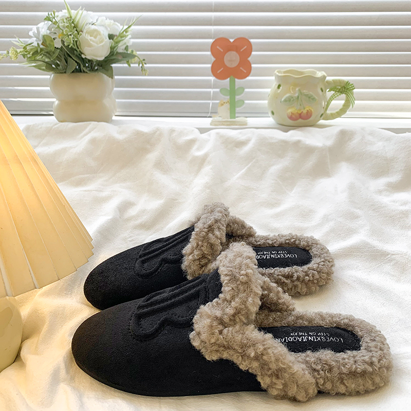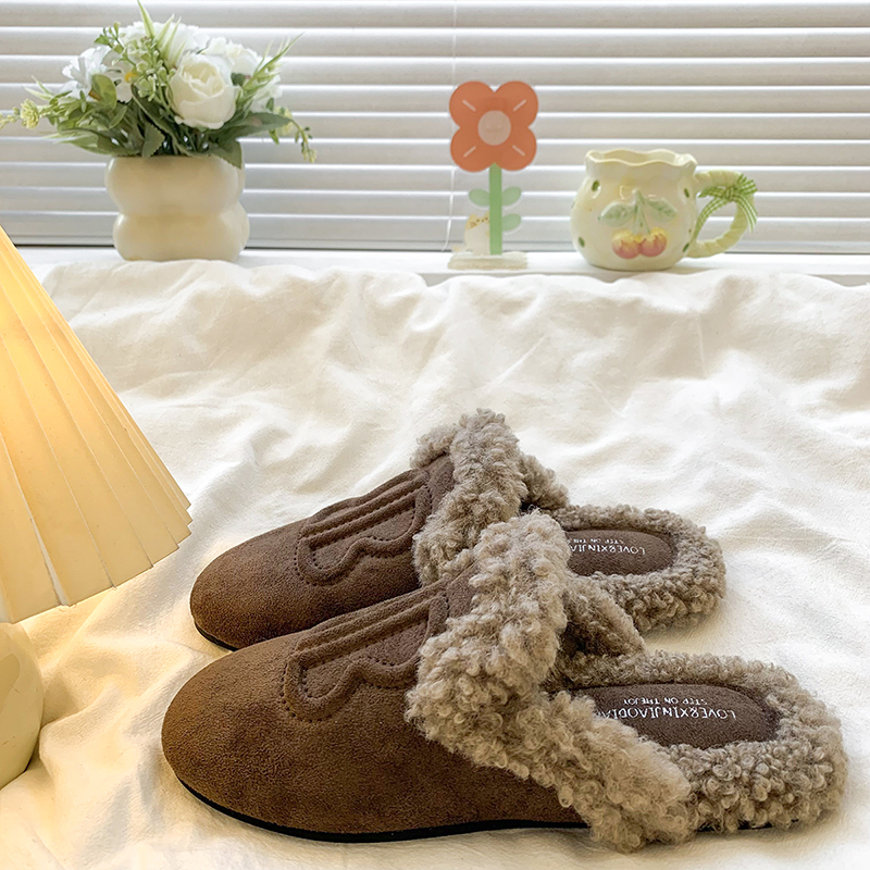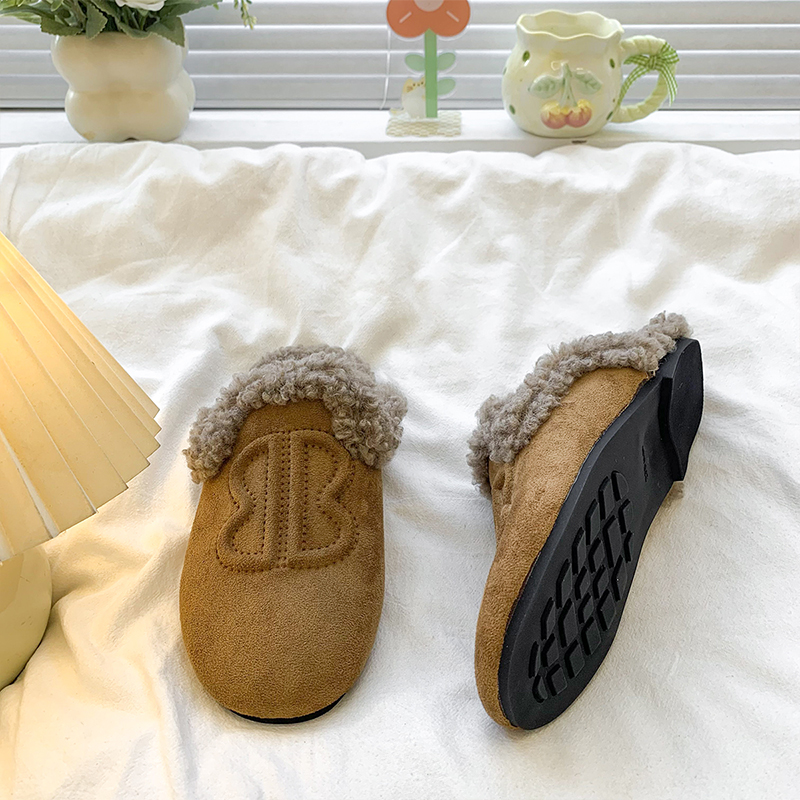 秋冬复古平底棉拖防滑包头半拖 女外穿2025新款 加绒勃肯鞋 毛毛拖鞋