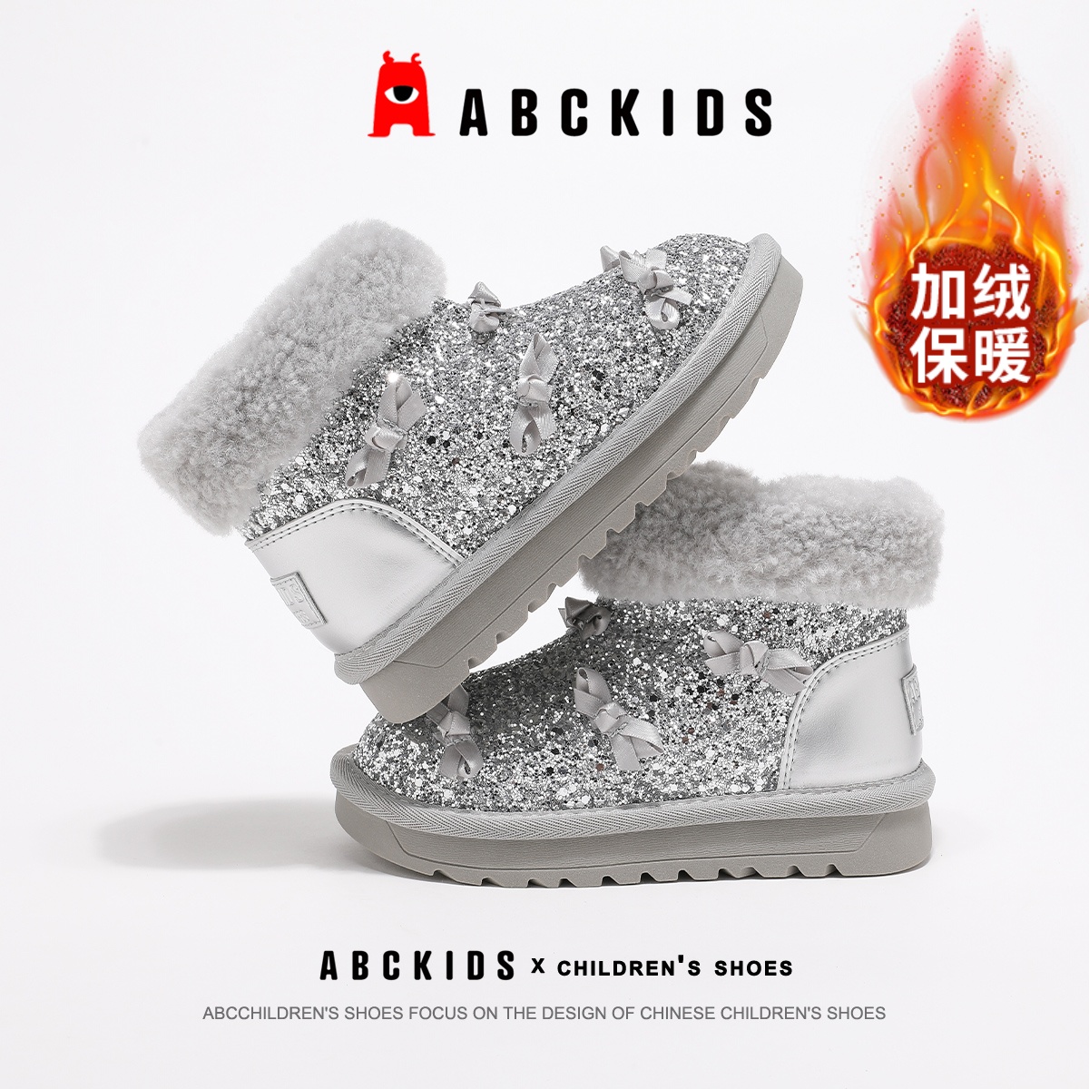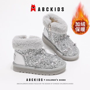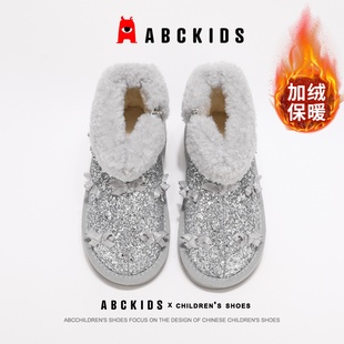 外穿防滑保暖毛绒棉鞋 2025新款 女孩 女童冬季 蝴蝶结防水儿童棉拖鞋