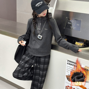 衣服小女孩帽衫 儿童上衣洋气外穿秋冬季 加绒卫衣2025新款 女童冬装