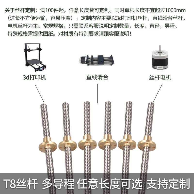 3D印表机丝杆 304不锈钢全牙步进马达丝杠螺母导程8 T8型梯形丝杆